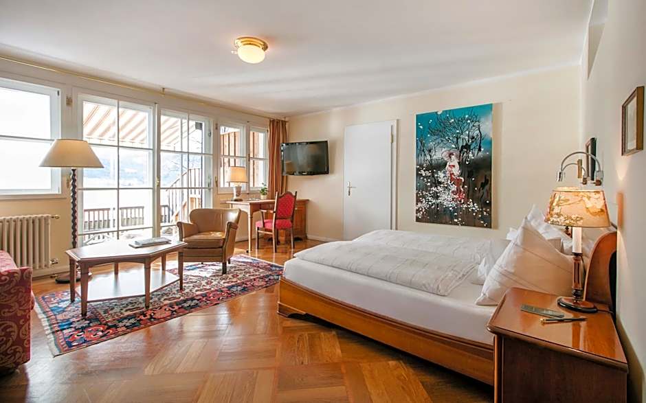 On-site dining centers around a restaurant with a traditional ambience and European cuisine, complemented by a bar, terrace, garden, and balcony options for al fresco moments. The private beach area and beachfront setting place guests right by the water, while lake and mountain views frame every meal and stroll.